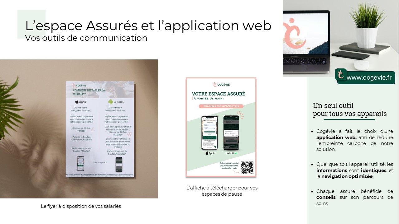 Simple, pédagogique et sécurisé, notre application web Cogévie permet d’envoyer ses factures, consulter ses garanties et ses services, partager sa carte de tiers payant…